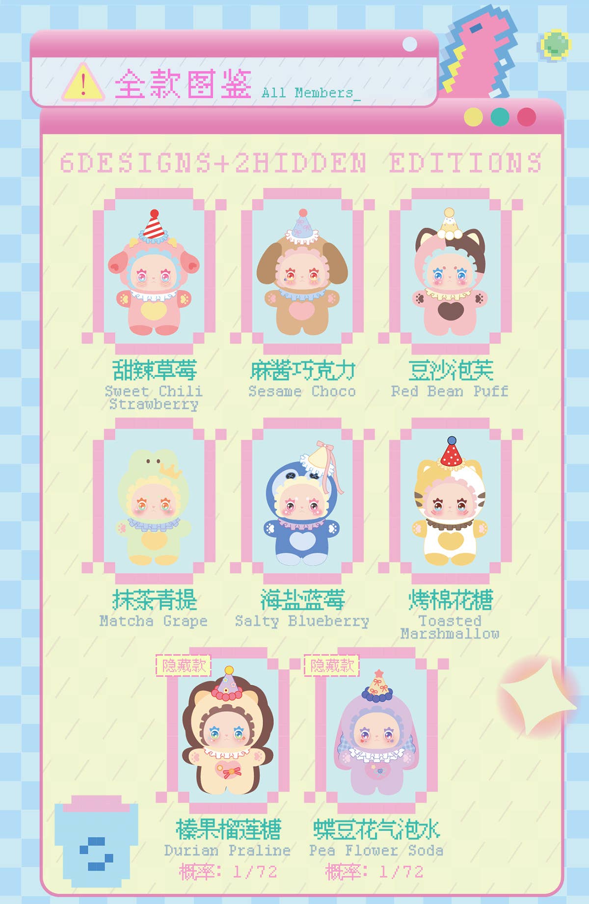 This series includes 6 regular designs and 2 rare hidden designs—will you be lucky enough to find one of the super-rare versions?